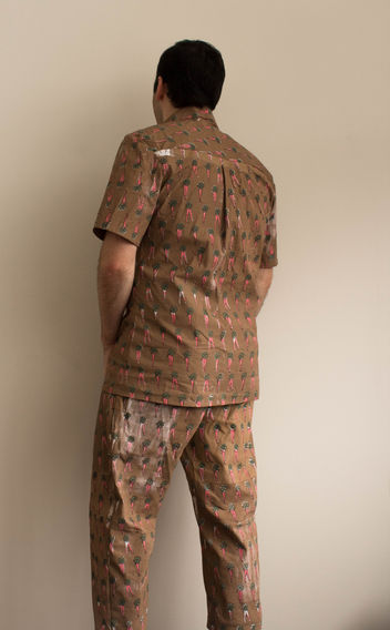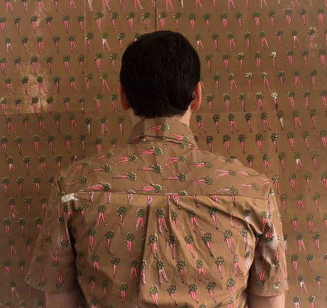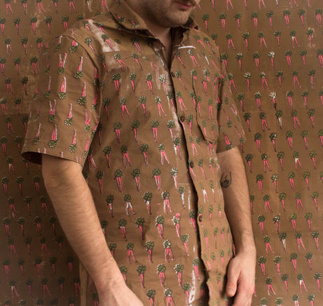 Part 2 is four layers of screen printing on both paper and fabric, choosing to print the solid color to keep the colors of the wallpaper and the outfit the same.